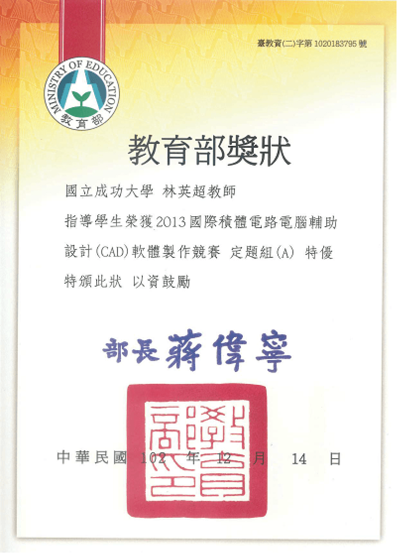 - 2013國際積體電路電腦輔助設計體製作競賽 特優