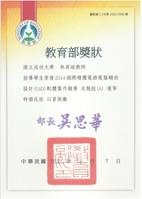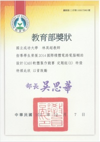 2014Dec 7CAD Contest 優等學生張鶴騰 陳境圃 獲得2014國際積體電路電腦輔助設計體製作競賽 優等