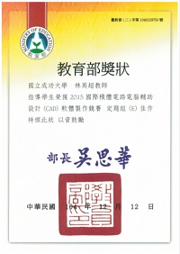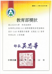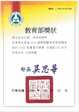 2015Dec 12CAD Contest E 佳作學生 羅靖淵 獲得 2015國際積體電路電腦輔助設計(CAD)軟體製作競賽國內賽定題組 E題佳作