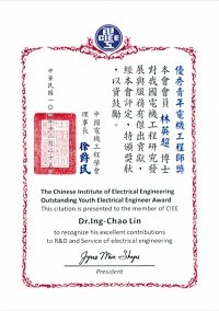 2015Dec 25優秀青年電機工程師奬林英超教授獲得2015中國電機工程學會"優秀青年電機工程師"奬
