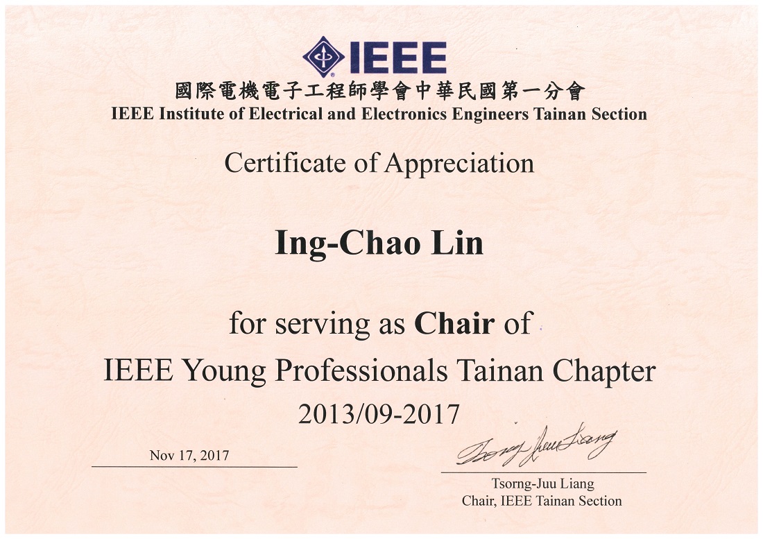 2017賀!! 林英超教授擔任IEEE Young Professionals Tainan Chapter
