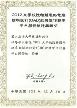 2012DecCAD Contest 特優2012 大專校院積體電路電腦輔助設計(CAD) 軟體製作競賽CAD Contest 平台開發組 特優