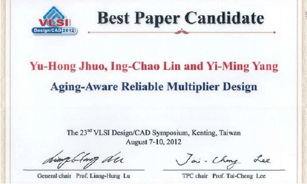 學生卓育弘獲得 VLSI/CAD Symposium 最佳論文候選