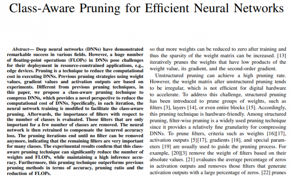 DEC052023論文"Class-Aware Pruning for Efficient Neural Networks"被頂尖國際會議DATE接受論文"Class-Aware Pruning for Efficient Neural Ntworks"被頂尖國際會議DATE接受