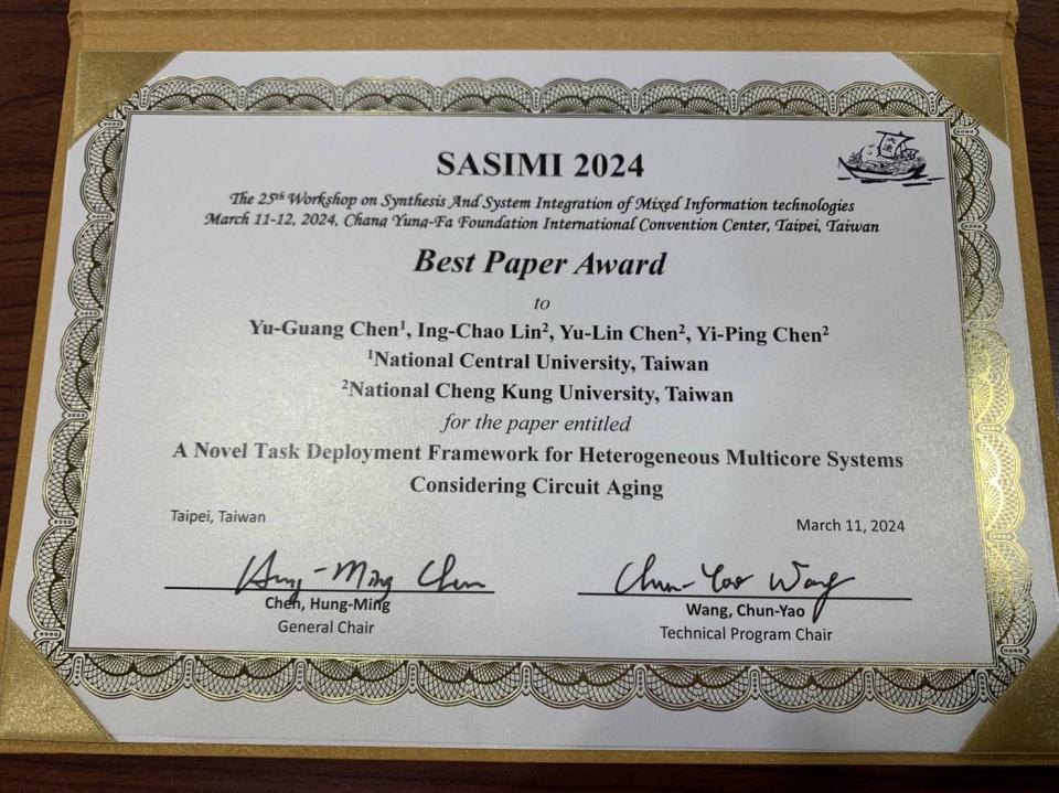Mar112024A Novel Task Deployment Framework for Heterogeneous Multicore Systems Considering Circuit Aging" 榮獲最佳論文獎A Novel Task Deployment Framework for Heterogeneous Multicore Systems Considering Circuit Aging" 榮獲最佳論文獎