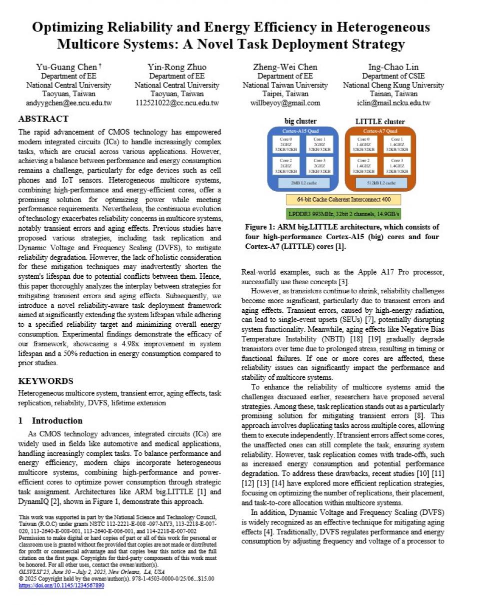 JUNE182025論文 "Optimizing Reliability and Energy Efficiency in Heterogeneous Multicore Systems: A Novel Task Deployment Strategy" 被 Great Lakes Symposium on VLSI (GLSVLSI) 2025 所接受論文 "Optimizing Reliability and Energy Efficiency in Heterogeneous Multicore Systems: A Novel Task Deployment Strategy" 被 Great Lakes Symposium on VLSI (GLSVLSI) 2025 所接受