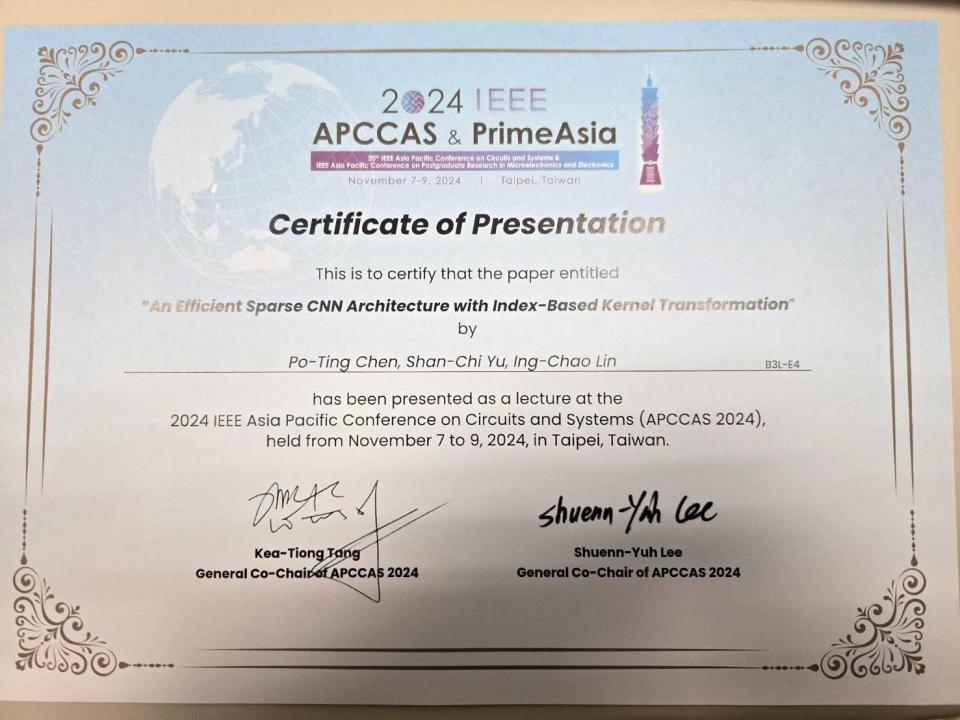 November072024學生俞杉麒在臺北的 APCCAS & PrimeAsia 會議發表論文學生俞杉麒在臺北的 APCCAS & PrimeAsia 會議發表論文