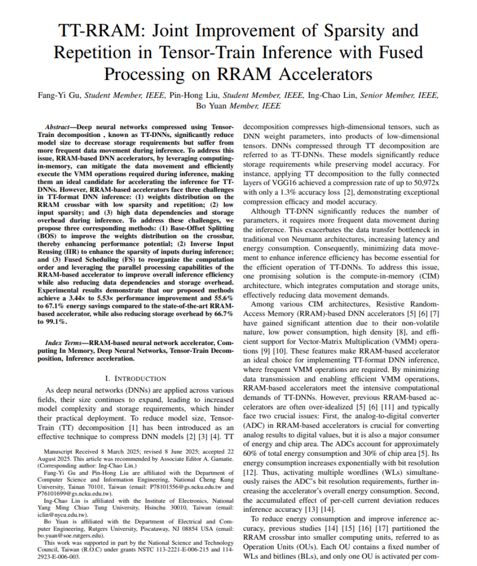 September012025<論文TT-RRAM: Joint Improvement of Sparsity and Repetition in Tensor-Train Inference with Fused Processing on RRAM Accelerators被 TCAD 所接受論文TT-RRAM: Joint Improvement of Sparsity and Repetition in Tensor-Train Inference with Fused Processing on RRAM Accelerators被 TCAD 所接受