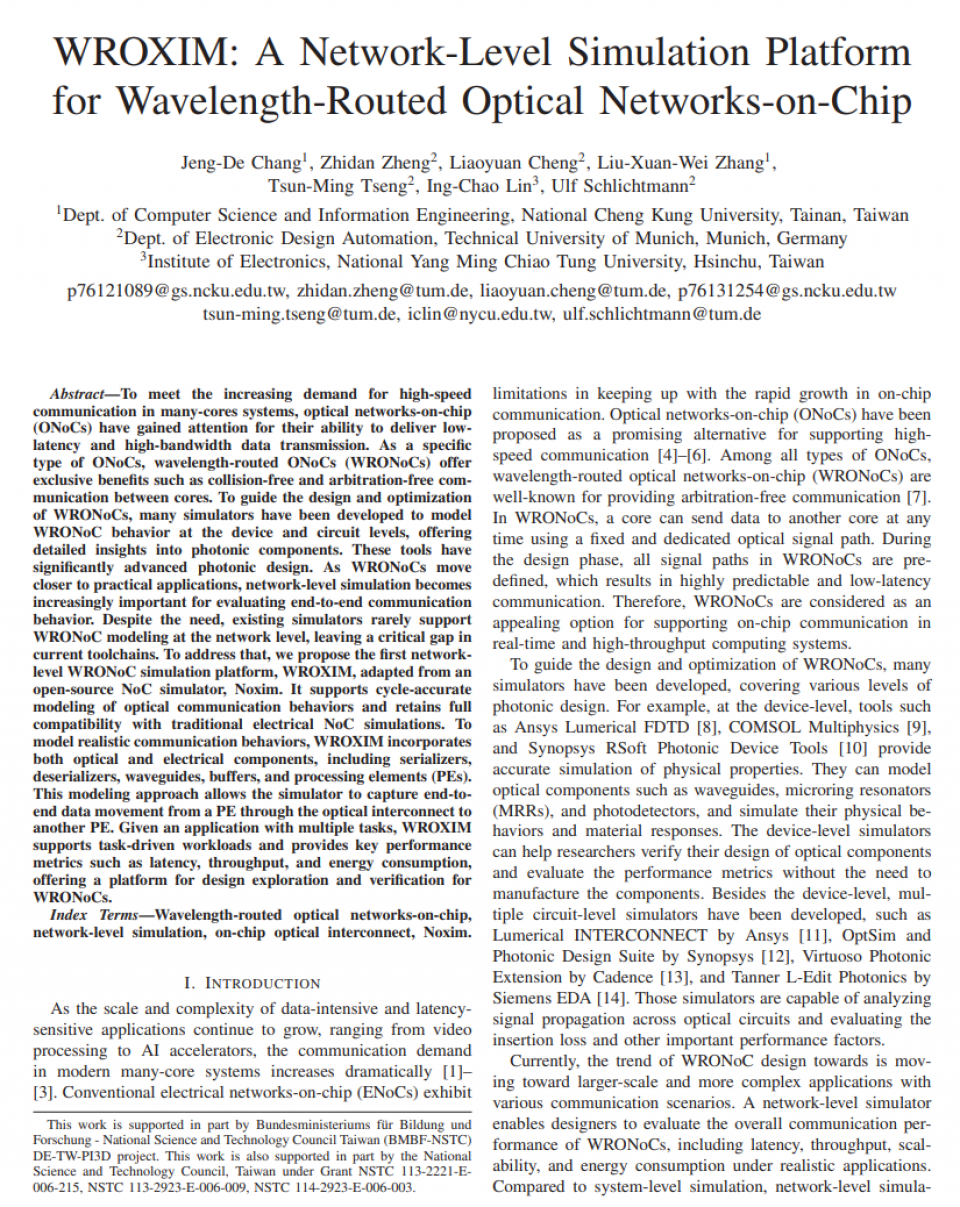 October262025<論文WROXIM: A Network-Level Simulation Platform for Wavelength-Routed Optical Networks-on-Chip被 ICCAD 2025 所接受論文WROXIM: A Network-Level Simulation Platform for Wavelength-Routed Optical Networks-on-Chip被 ICCAD 2025 所接受