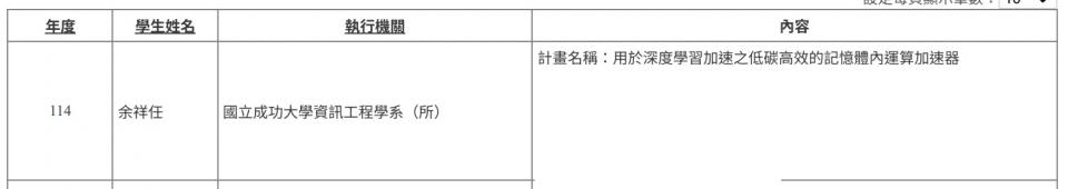 專題生通過114年度「大專學生研究計畫」